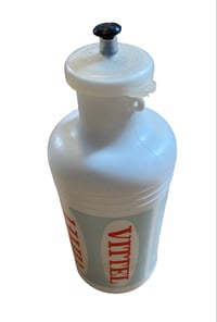 The water bottles or the gourds (a word used in Belgium) are made of plastic since 1954, hermetically closed by a stopper of the same material, always of the same capacity (half a liter) positioned in bottle cages on the down tube of the frame.