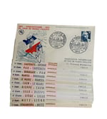 Egalement une série complète de 23 enveloppes timbrées avec cachets postaux illustrés.