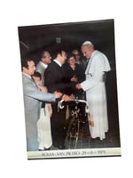 In the words of Ernesto Colnago, "We built this golden bike for the Pope in 1979. It was a special day when we went to the Vatican to present it to him. Very emotional for me. I went with my entire family; my brother Paolo and his son Alessandro. We heard that the Pope liked to ride a bike and that he did a ride of 38km two times a week when he was in Krakow and he continued to ride when he was in Castel Gondolfo (the Pope's summer residence outside of Rome).